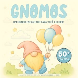 Livro de colorir digital com mais de 50 páginas de gnomos fofos e divertidos. Inclui PDF pronto para imprimir quantas vezes quiser. Ideal para crianças, famílias e atividades criativas.