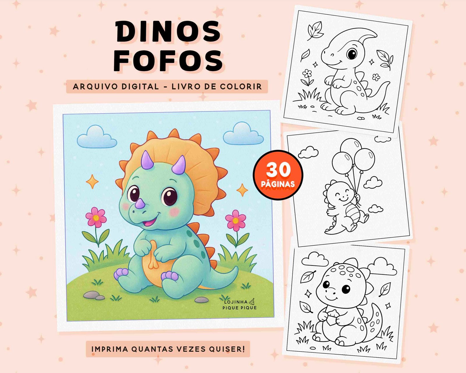 Um livro de colorir super fofo com 30 páginas de dinossaurinhos para imprimir e se divertir! Arquivo digital em PDF, pronto para baixar e usar quantas vezes quiser.